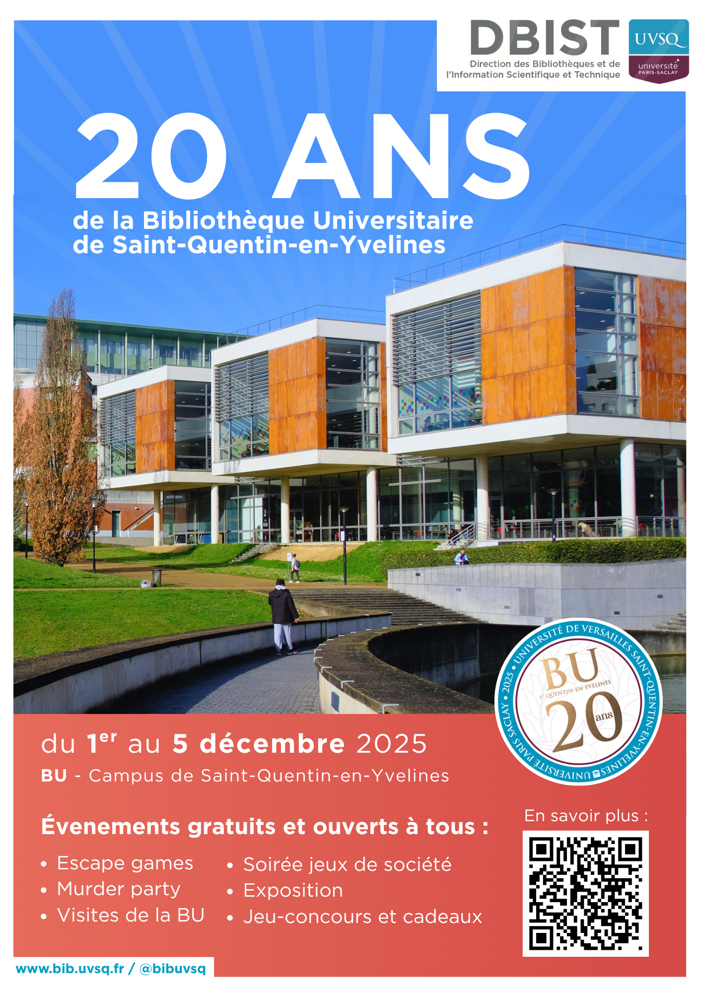 Entrée dans la limite des places disponibles, inscription obligatoire sur le site de l'UVSQ : https://www.uvsq.fr/20ansbusqy