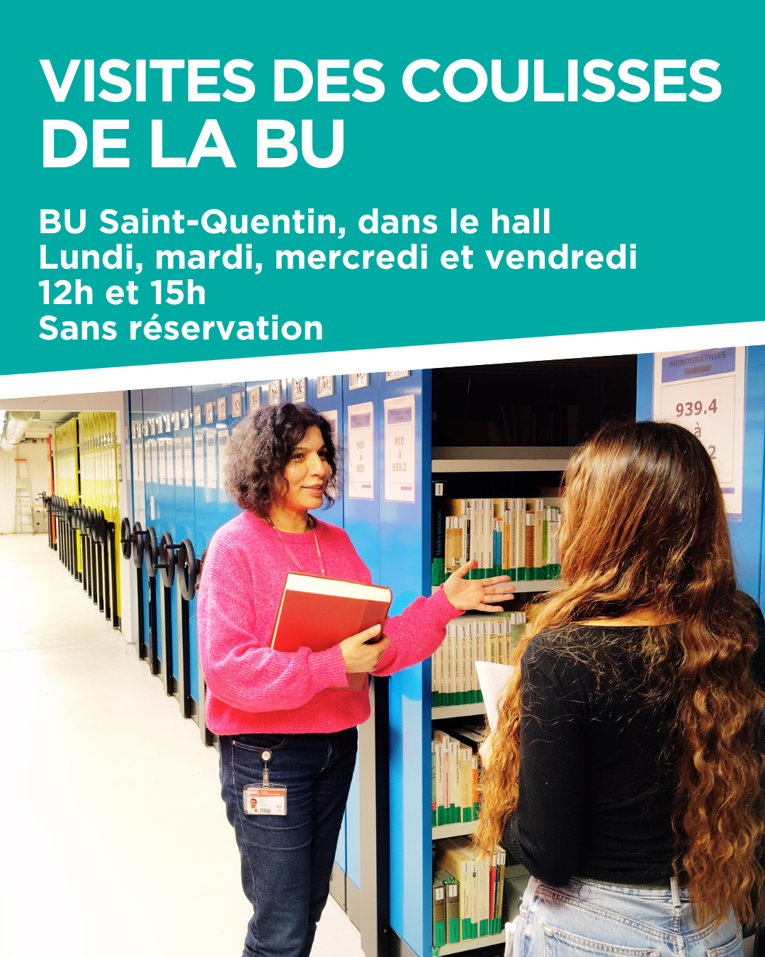 Des visites des coulisses de la BU et de l'exposition en 20 minutes ! Découvrez toutes les facettes du métier de bibliothécaire ... et des indices pour répondre au quiz et gagner des lots.