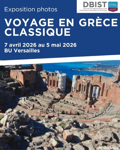 | [EXPOSITION] Voyage en Grèce classique 7 avril 2026 - 5 mai 2026 Découvrez la Grèce antique à travers une série de clichés réalisés lors d’un voyage par les étudiantes et étudiants de l’association Sorbonne Antique. | |