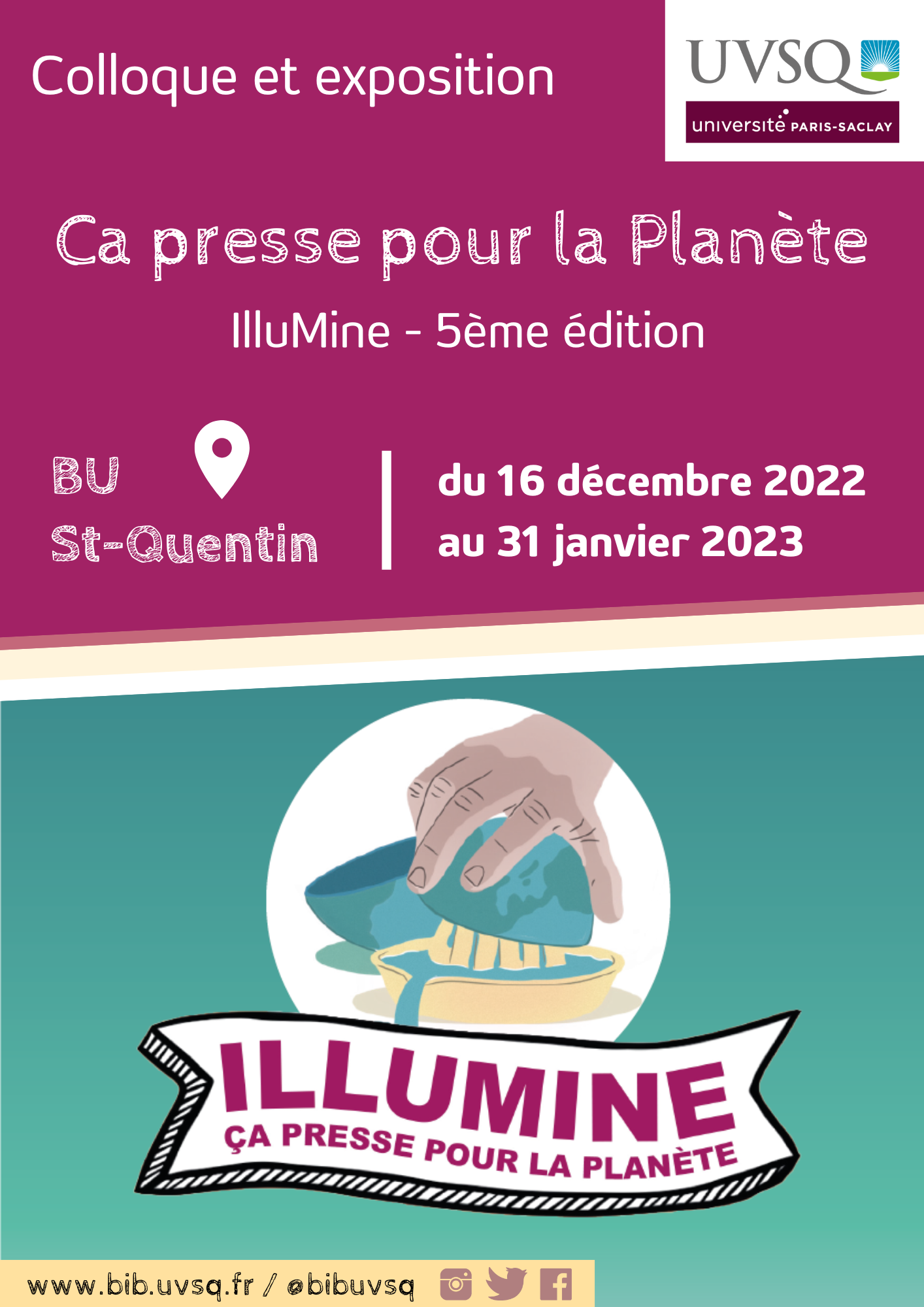 Jusqu’au 31 janvier 2023, venez déambuler, observer et éveiller votre réflexion grâce à l’exposition "Ça presse pour la planète" présentée à la BU de St-Quentin.