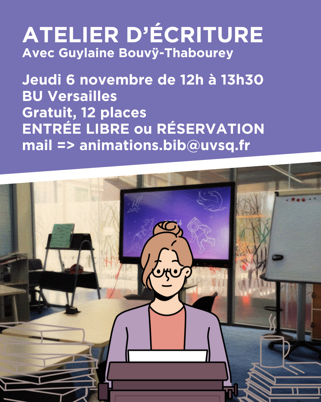 Inscription par mail avec vos nom, adresse mail et numéro de portable : animations.bib@uvsq.fr